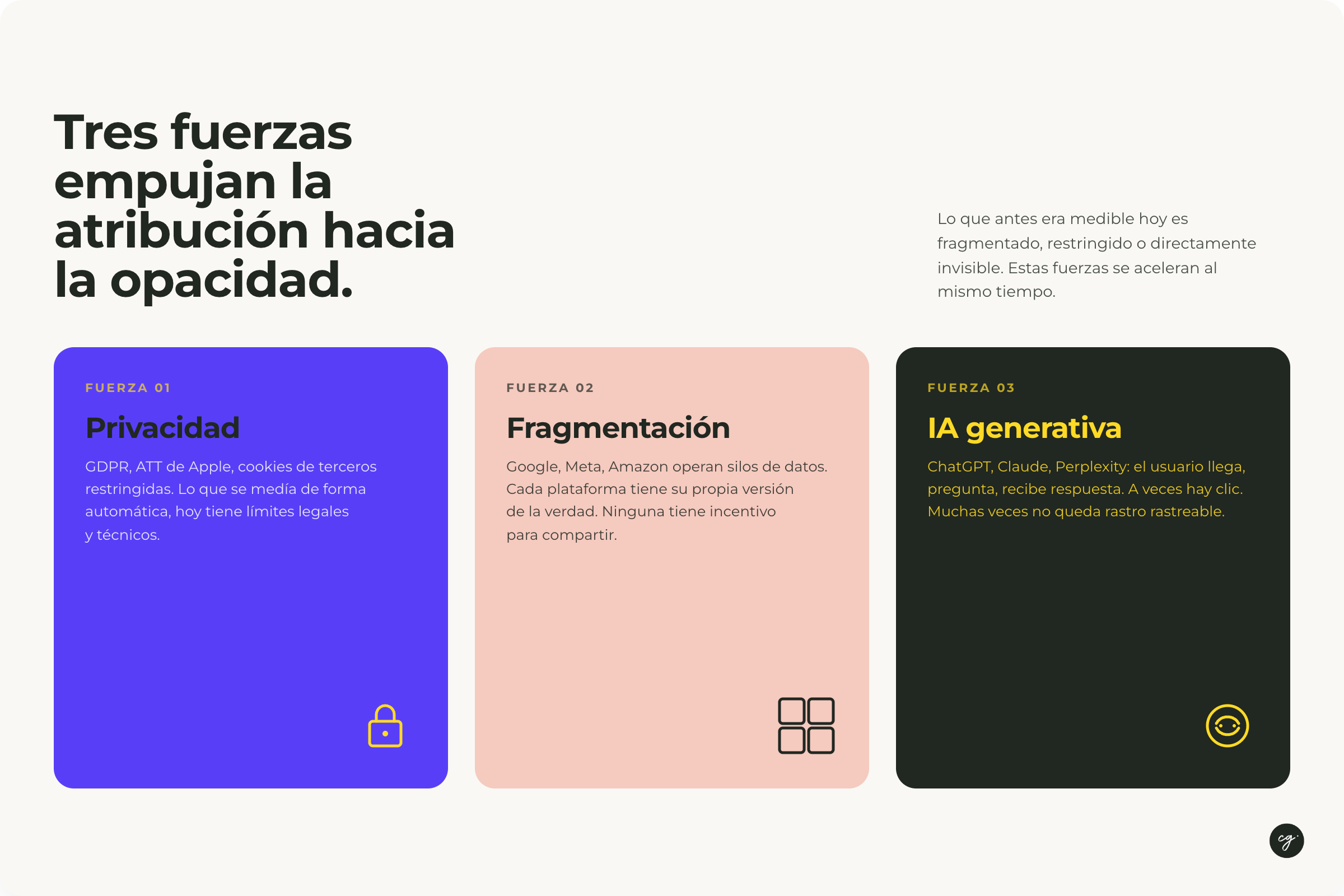 No sabemos lo que no sabemos. Pero si seguimos obsesionados con atribuir cada venta a su fuente exacta, corremos el riesgo de optimizar para la métrica equivocada o medir por medir.