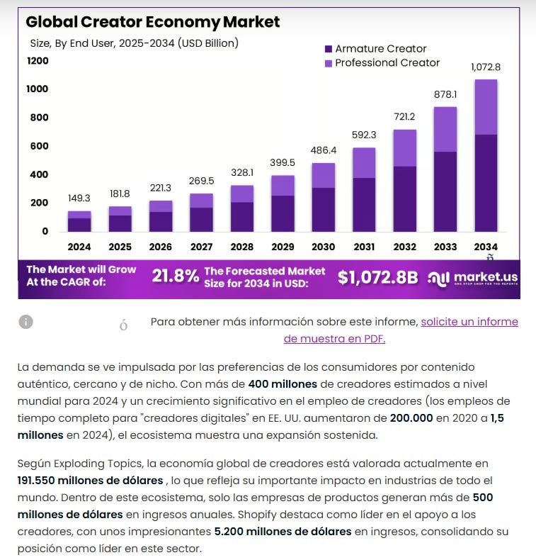 Market.us. (2025a, febrero 25). Content Creator Economy Market Size | CAGR of 25.6%. https://market.us/report/content-creator-economy-market/