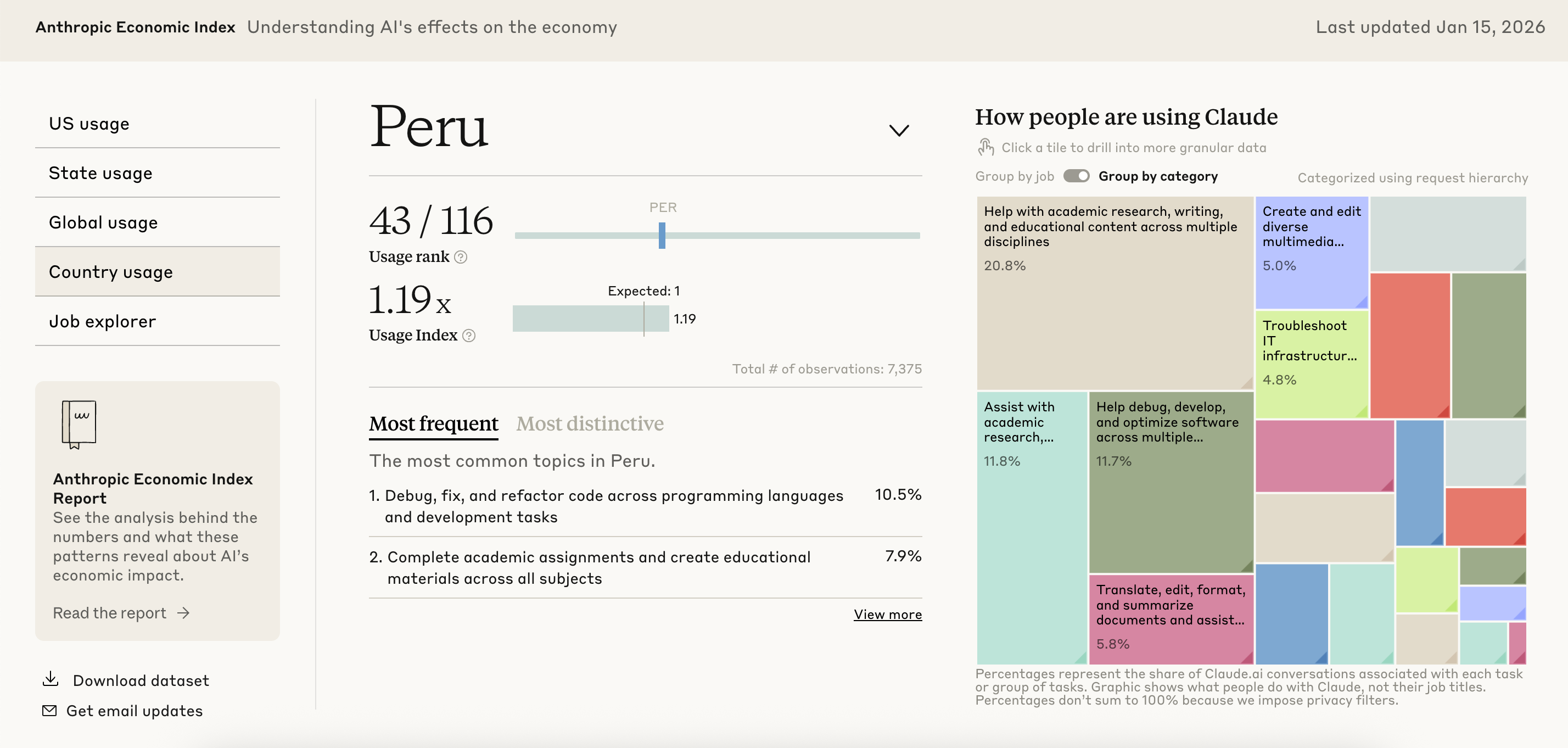 El Índice económico de Anthropic actualizado a enero del 2026, un instrumento hermoso que mide una serie de indicadores de uso de Claude en distintos países y para distintas funciones.