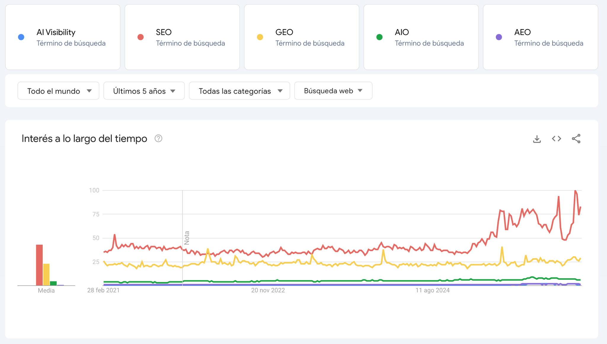 Veamos qué dicen los datos sobre las búsquedas sobre la visibilidad en IA: